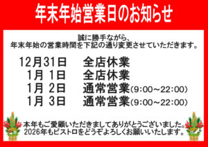 北越谷店 店休のお知らせ